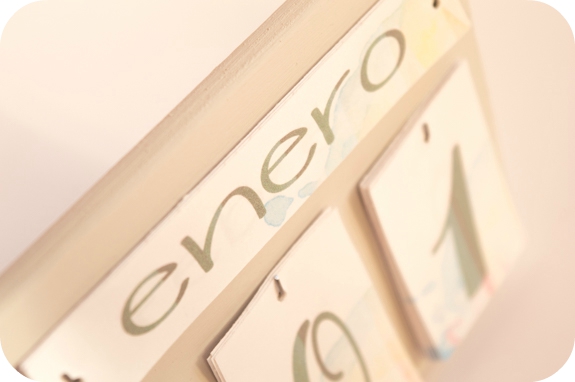 Con la cola blanca he pegado el soporte a la base para que así nuestro calendario pueda quedarse de pie.