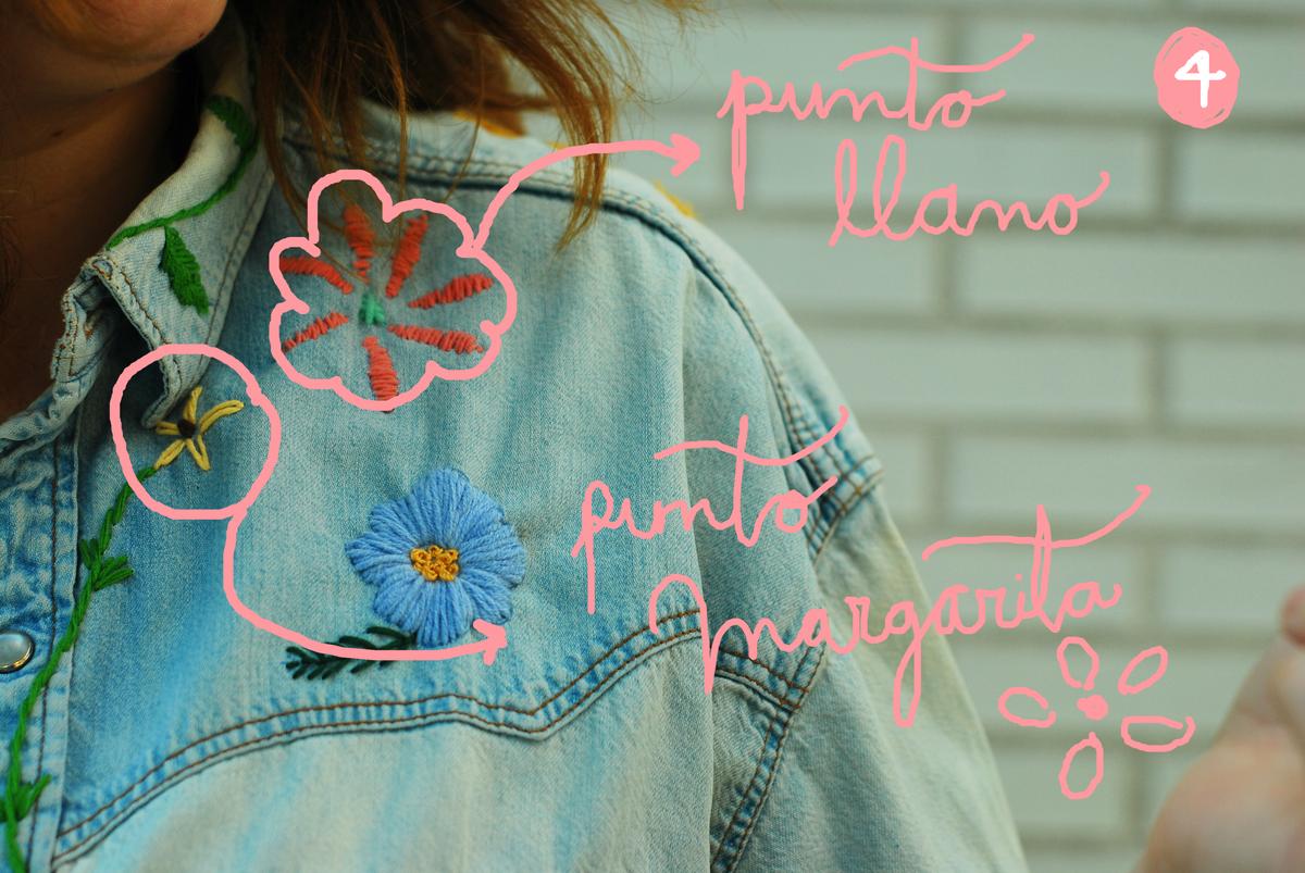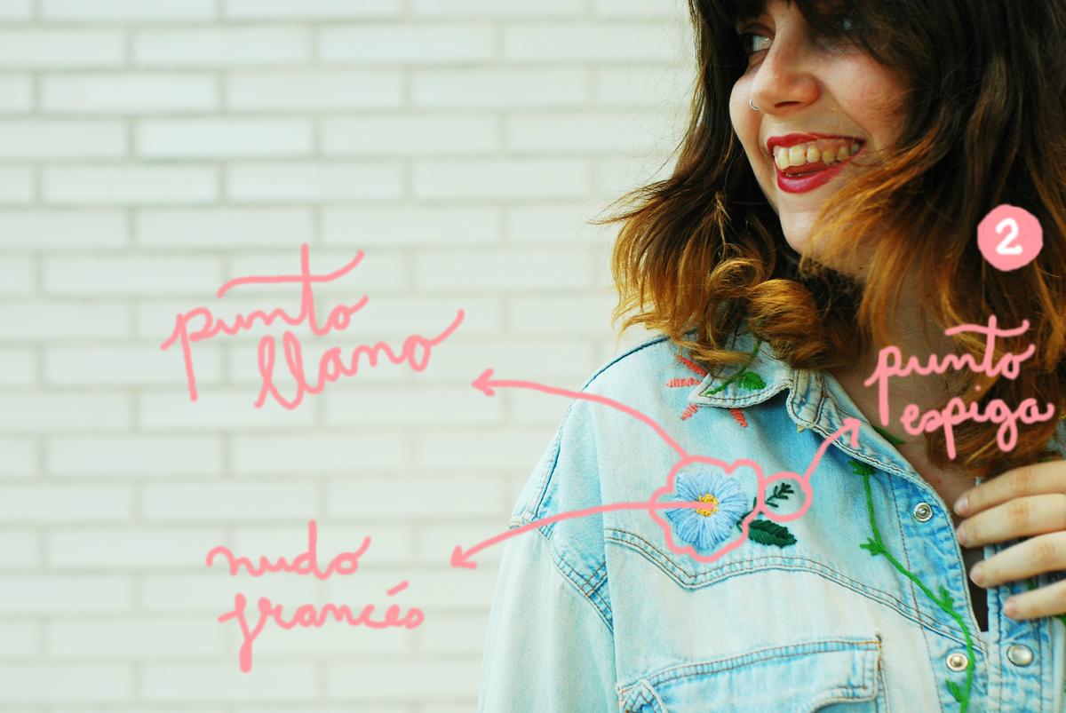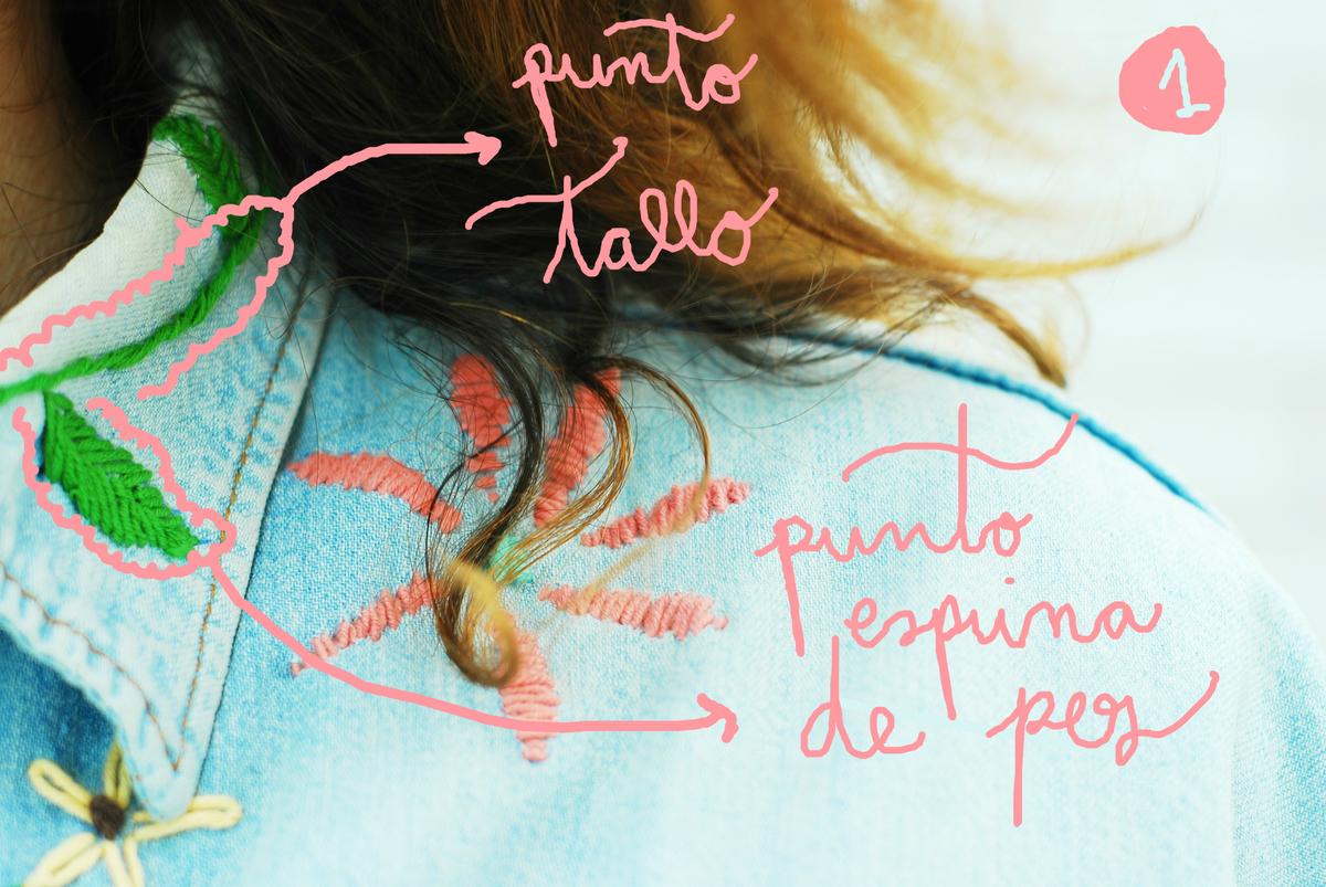 Más abajo os dejo todos los puntos que he utilizado para hacer cada parte por si os animáis a bordar alguna prenda de ropa