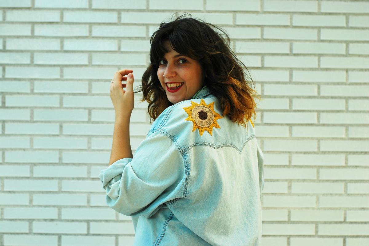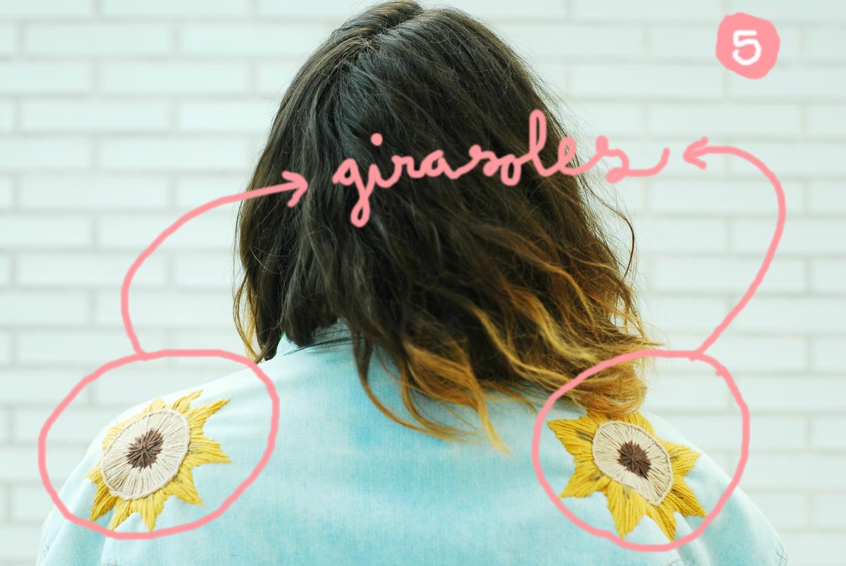 Por último, y la parte que más me gusta de la camisa, bordé estos dos girasoles en los hombros. Los vi en el canal de Mar Pendás y creo que no será la última vez que los borde