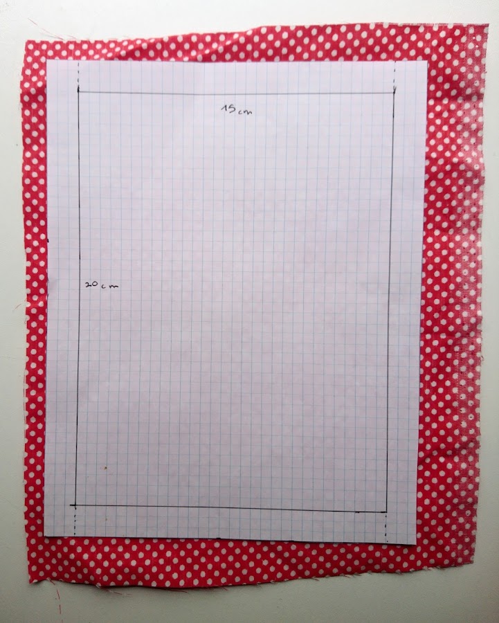 Una vez que hemos reunido todos los materiales necesarios, vamos a empezar a dar forma al bolsillo, para ello en la hoja de cuadros decidiremos el tamaño que queremos para el bolsillo, en mi caso 15 cm de ancho y 20 cm de largo, además hay que añadir 1.5 cm a cada lado para hacer el dobladillo, para evitar que se deshilache el bolso.