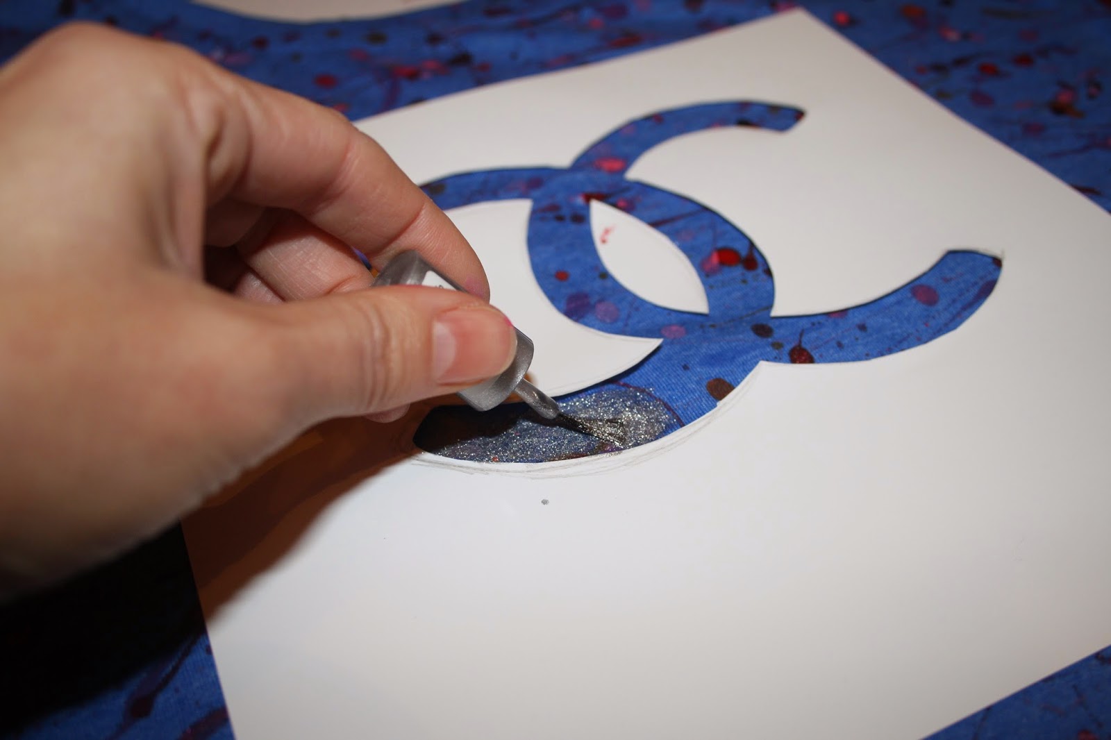 Y ahora vamos a dibujar el logo de chanel en el centro de la camiseta. Para ello, en un folio dibujamos la plantilla y posteriormente recortamos la parte de adentro. Si lo tuyo no es dibujar, puedes imprimirlo de internet.