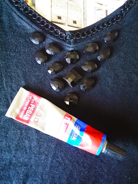 Busqué en mi DIY ROOM WORK y precisamente encontré los materiales ideales para esta camiseta básica negra ,son: