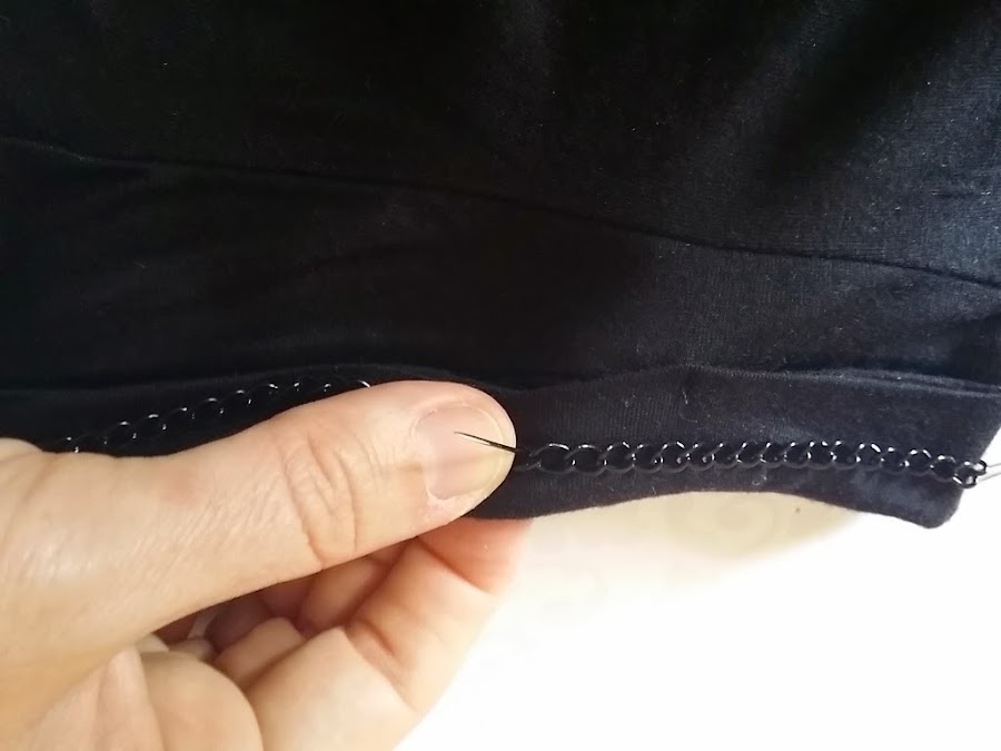 Damos varias puntadas en diferentes eslabones a lo largo de la manga para que no se salga la cadena.