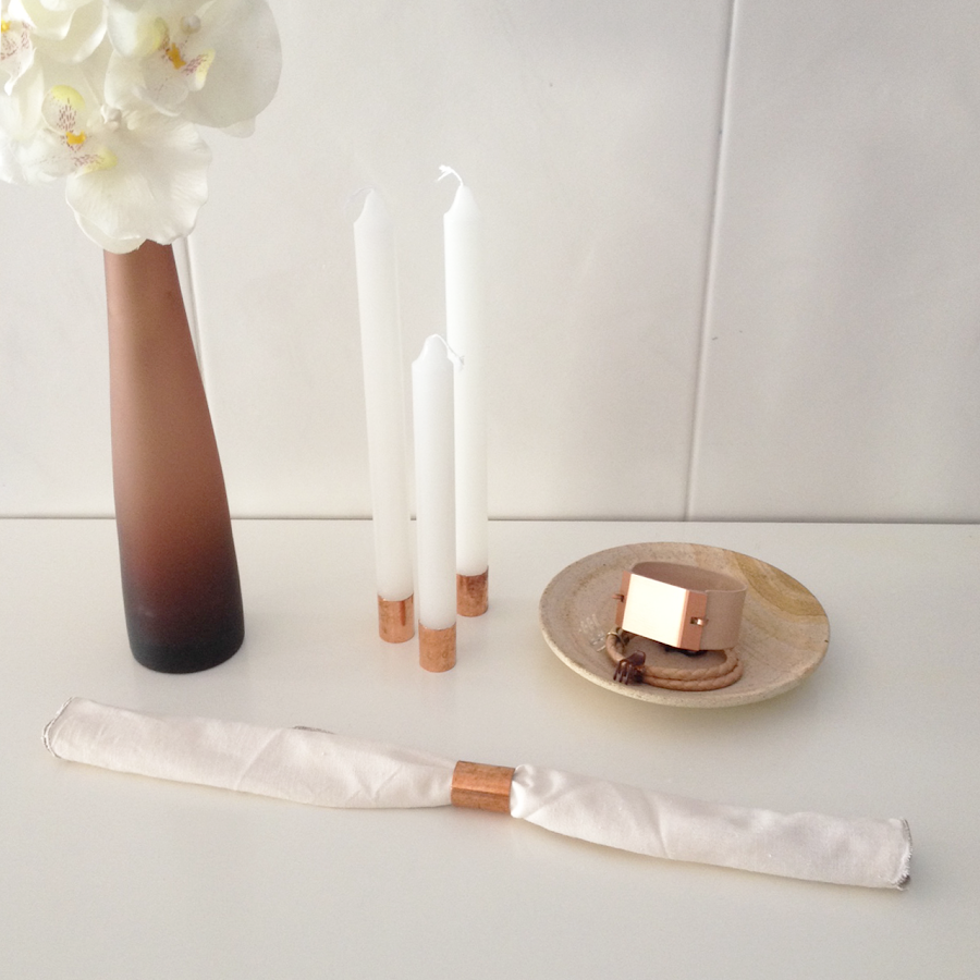 Y si la idea de candelabro no os convence u os cansáis de ella, siempre podéis utilizar las anillas de cobre cobre como servilleteros que también quedan muy monos ¿no créeis?