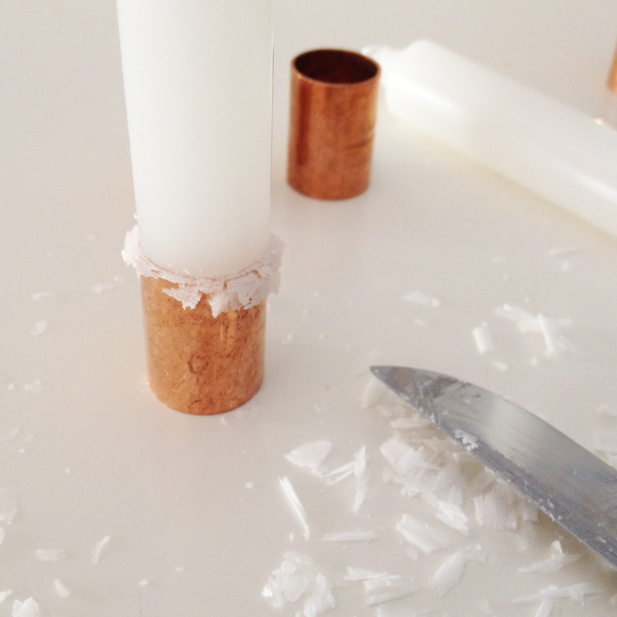 Como os decía, es un DIY muy barato porque sólo hace falta estas bases de cobre tan bonitas que son conexiones de tubería. Para conseguirlas sólo tenéis que ir a la ferretería y preguntar por uniones de cobre. Las más grandes que yo conseguí fueron estas de 18mm. Y lo mejor de todo es que cuestan 25 ctos cada una.Además, necesitaremos las velas que más nos gusten y un cuchillo o cutter. El cuchillo es porque en mi caso las velas eran algo más anchas que la base así que tuve que recortar un poco los bordes.