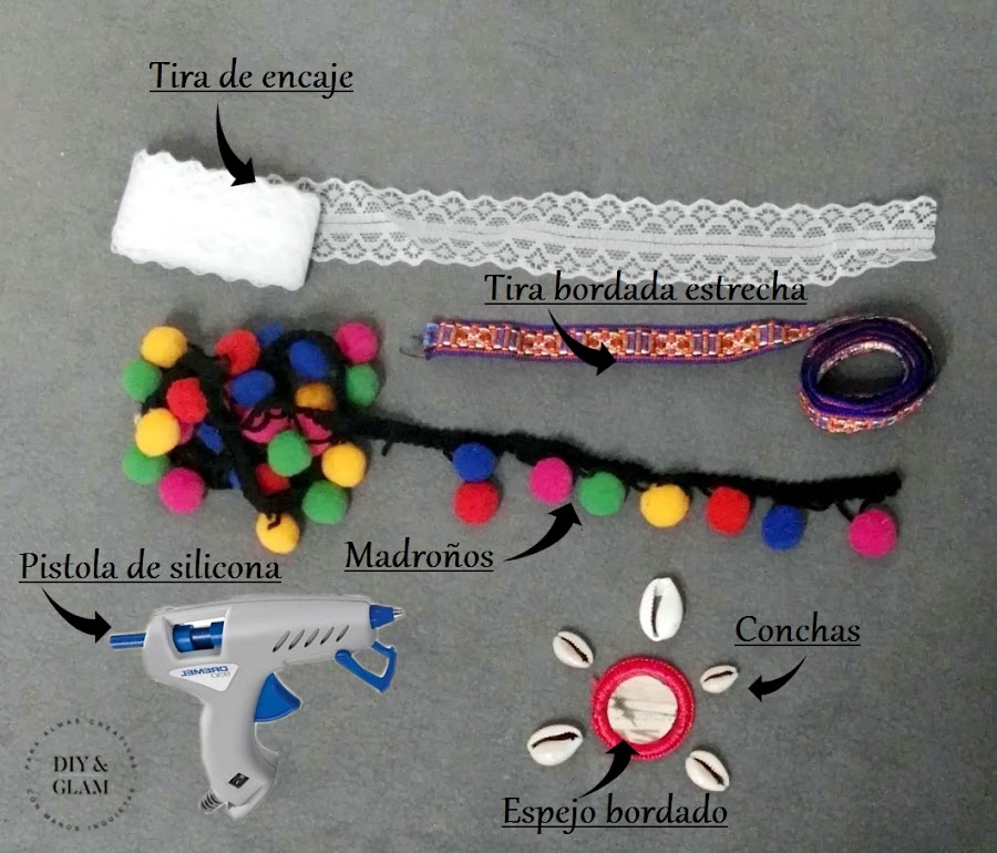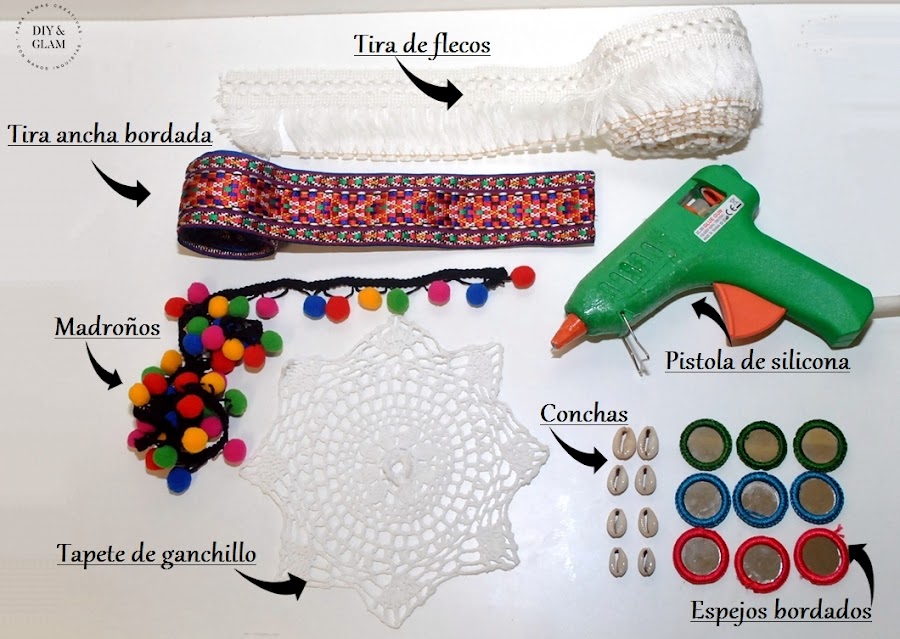 Lo que sí compré fueron los cristales bordados, creo que los compré en esta tienda . Es lo que más me costó encontrar, lo demás en cualquier mercería tienes.