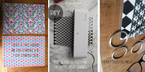 Esta Carpeta Molona la fabriqué con cuatro papeles diferentes, así que dependiendo de la posición de las tapas puedes lucir cuatro modelazos distintos. Tan fácil como soltar las anillas y girar la tapa.