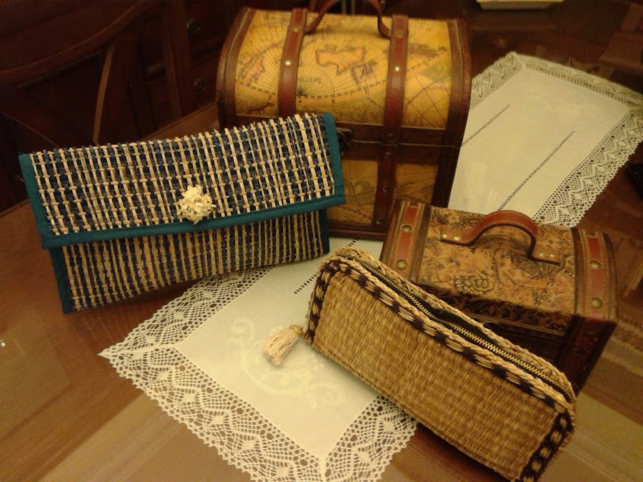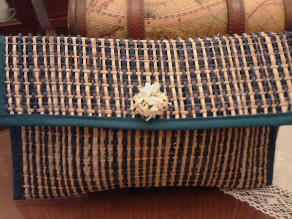 Así que comencé la tarea ,el primero era rectangular y fue facilisimo solo tuve que doblarlo por donde quería y como traía un vivo rematándolo por ahí fue donde lo cosí .Y solo tuve que añadirle un broche de imán que tenía unas pestañas de chapa,así que remate la parte superior con estas florecillas que tenía del mismo tono y este ha sido el resultado.