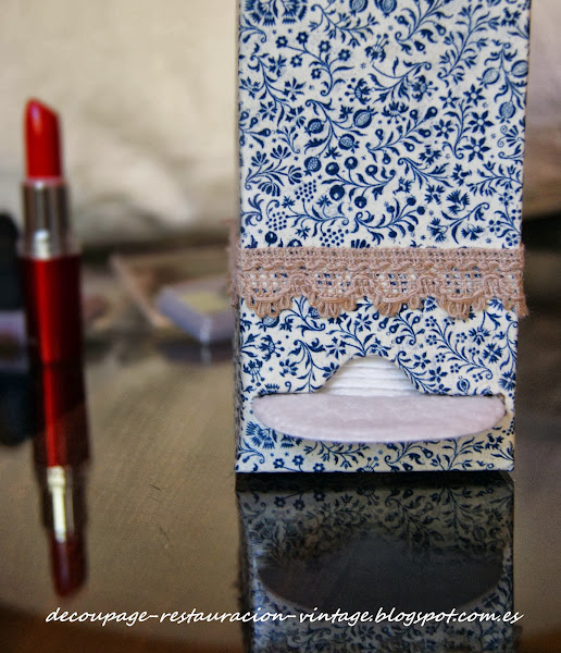 Se me ocurrió hacerlo porque me da mucha rabia la bolsa en la que vienen, me parece muy poco práctica, así que me puse a diseñar el patrón y a hacerlo con cartonaje. Se abre por detrás para rellenarlo y los vamos cogiendo por la obertura que tiene delante y por la que solo sale uno. Mucho más práctico y bonito para tenerlo en el cuarto de baño y mejor que la bolsa no??