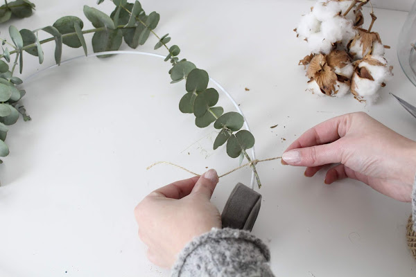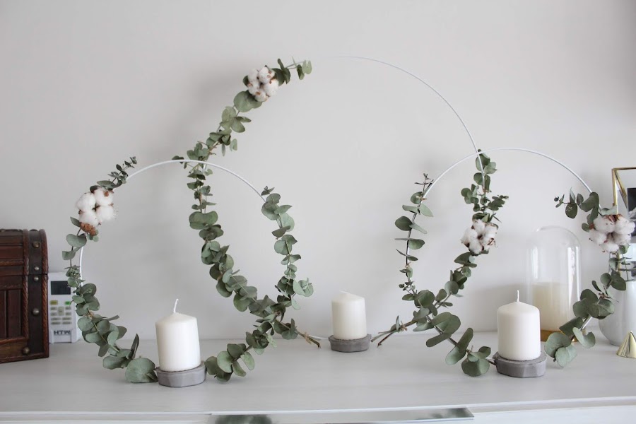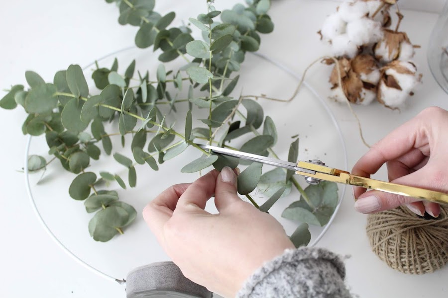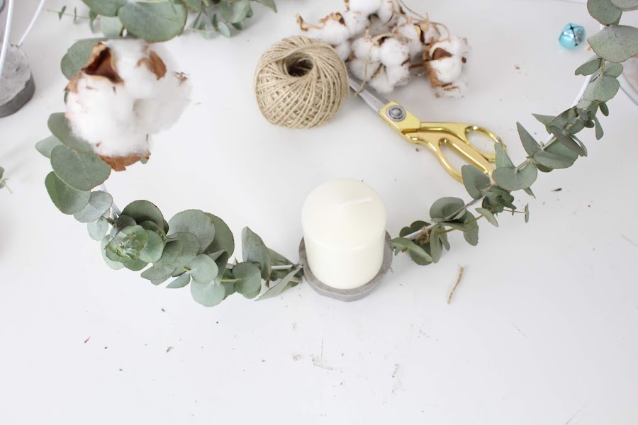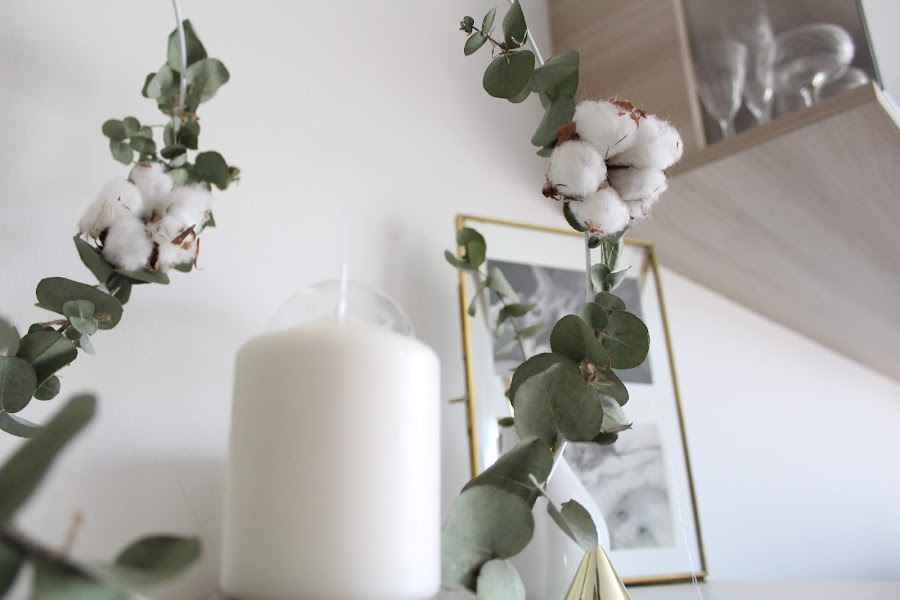 4 PASO: Una vez seco quitamos el molde y decoramos con eucalipto y flores de algodón.
