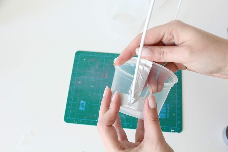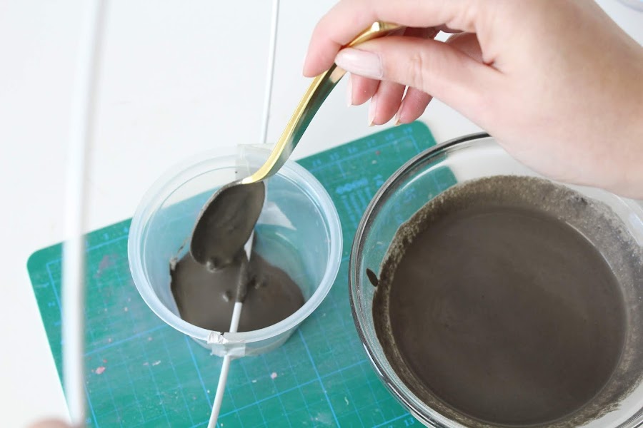 3 PASO: Rellenamos el envase de plástico con el cemento y dejamos secar 48 horas.
