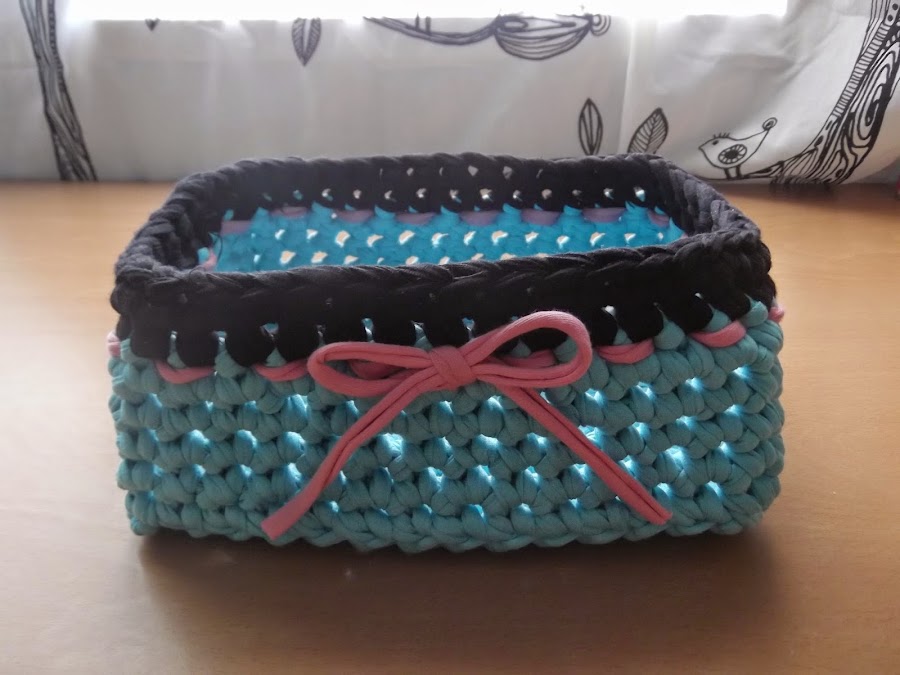 Se trata de una cesta de trapillo rectangular, la cuál he aprendido a tejer gracias a este tutorial de Happy Ganchillo.