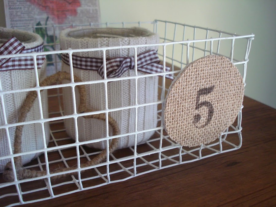 con un trozo de corcho, arpillera y un estarcido.