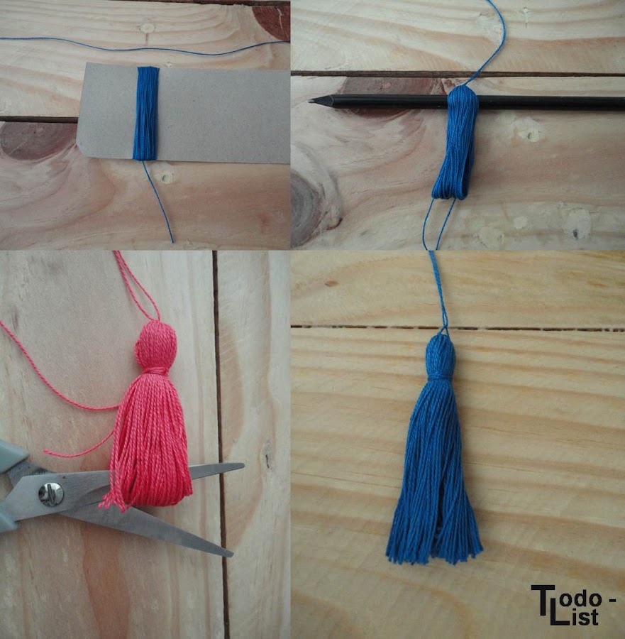 Las borlas podéis encontrarlas ya hechas pero decidí hacerlas, así tienes más opciones de colores y puedes hacerlas del tamaño que más te guste.