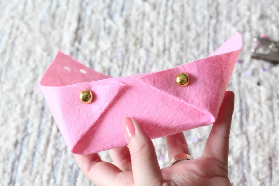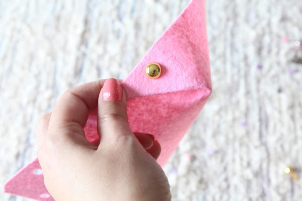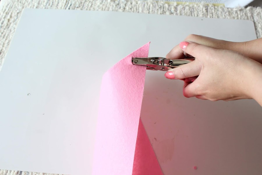 2 Paso: Pinzaremos las esquinas (Como se ve en la imagen) y haremos unos agujeros con la perforadora.