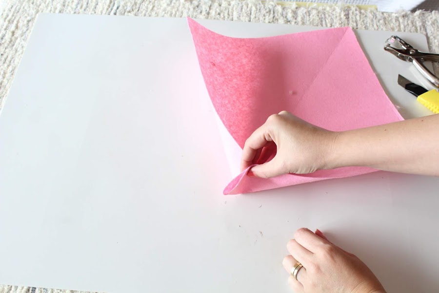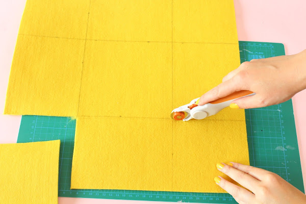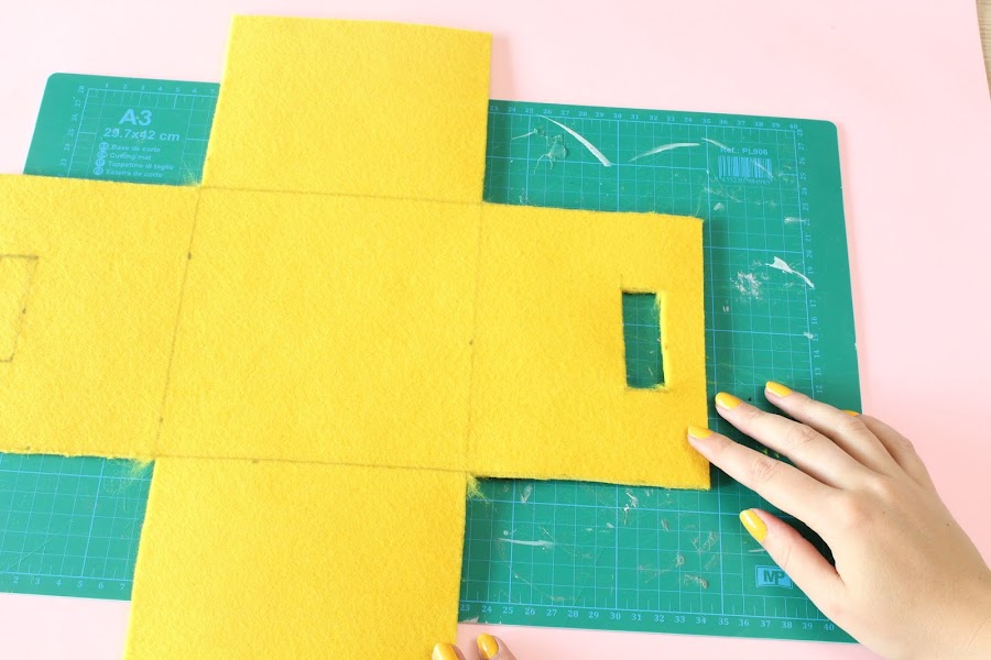 1 Paso: Cortaremos el fieltro para crear un cuadrado.