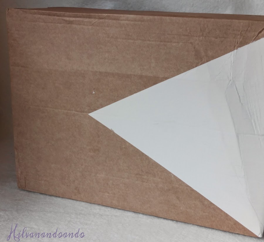Y con una sola mano se quedó fenomenal, como ves se taparon todas las letras. Y conseguí reaprovechar una caja dándole otra estética.