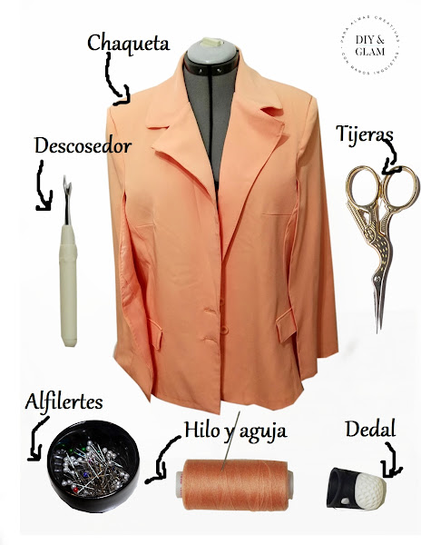 Porque una chaqueta en color quisquilla no te creas que es fácil de conseguir. Esta en concreto era de mi suegra que muy amablemente me la dio (ejem, ejem) para este diy. El problema es que es más ancha y baja que yo y la tuve que rehacer un poco.