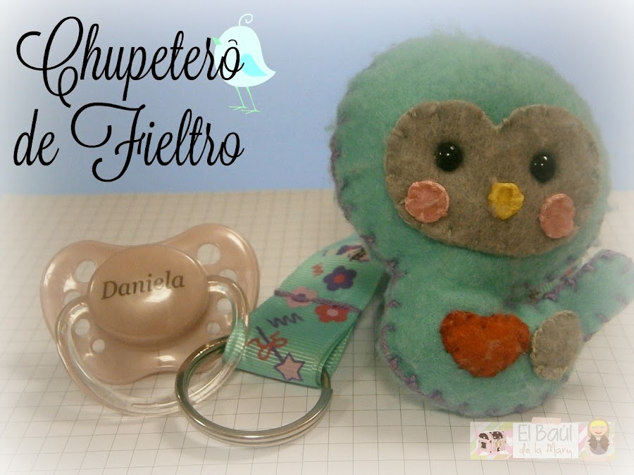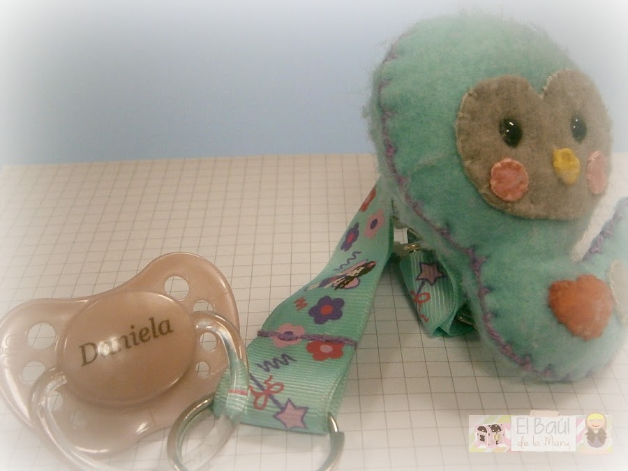 Pues además de los búhos, adapté uno de sus patrones gratuitos para hacerle este chupetero a la baby.