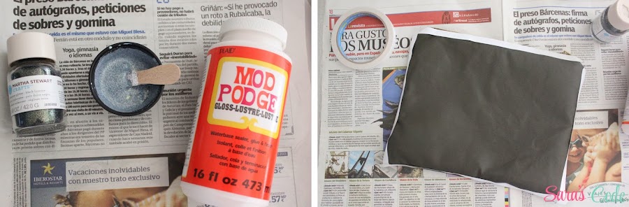 ? Mezclamos un poco de Mod Podge con el doble de purpurina.