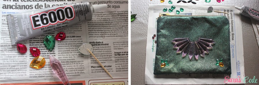 Para despedir el 2013 y comenzar el nuevo año con glamour, no podía faltar un DIY especial nochevieja! Hoy os voy a enseñar como personalizar un clutch sencillo y convertirlo en un clutch de fiesta, ideal para complementar y dar color a nuestro aoutfit de esta noche.