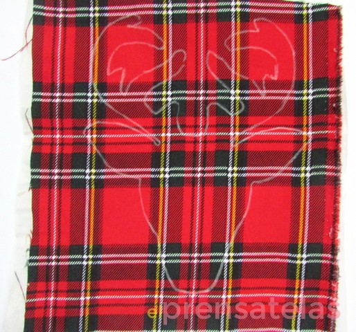 Corto un trozo de tela suficiente para que quepa el motivo y pego la fliselina en la parte posterior, dejando el papel: