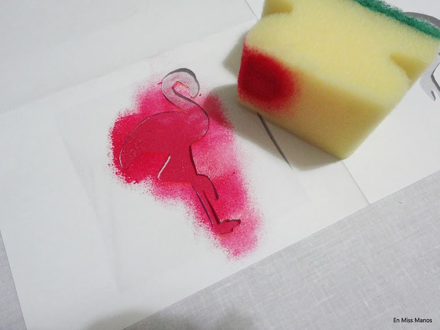 Con una esponja y pintura textil se van dando toquecitos con cuidado sobre la plantilla.