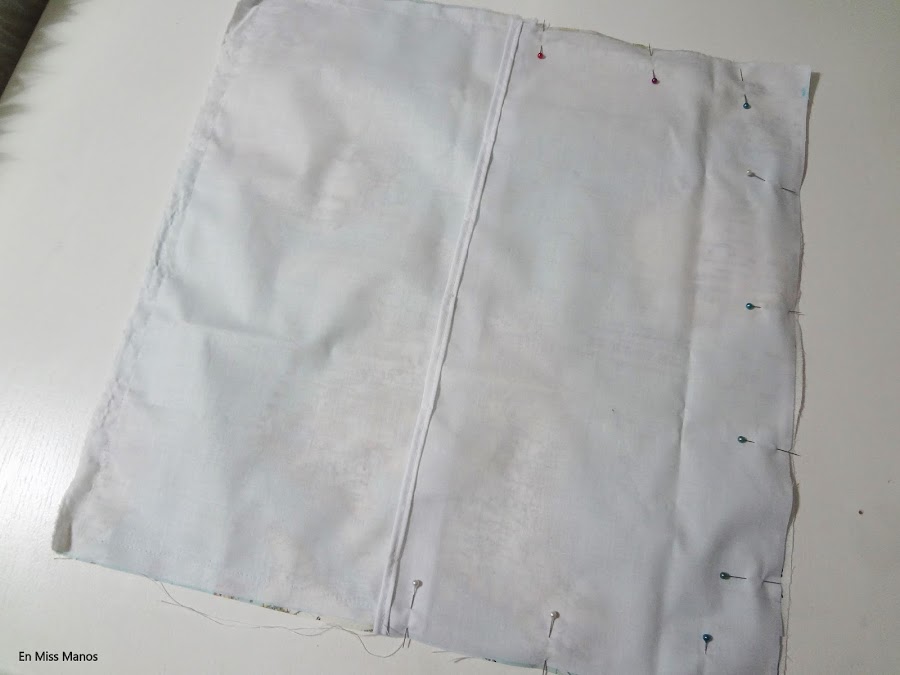 Se cortan las partes a la medida del relleno de cojín y se enfrentan para coser una vez hecho los dobladillos.