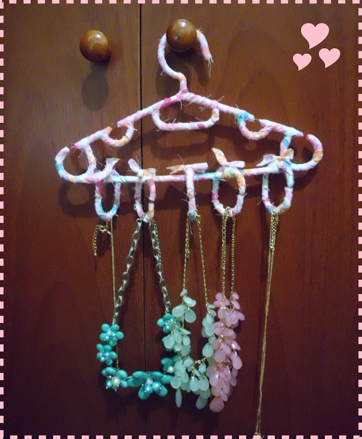Si no quieren realizar un organizador, la idea también sirve para decorar o forrar los ganchos de ropa y darles un estilo único.