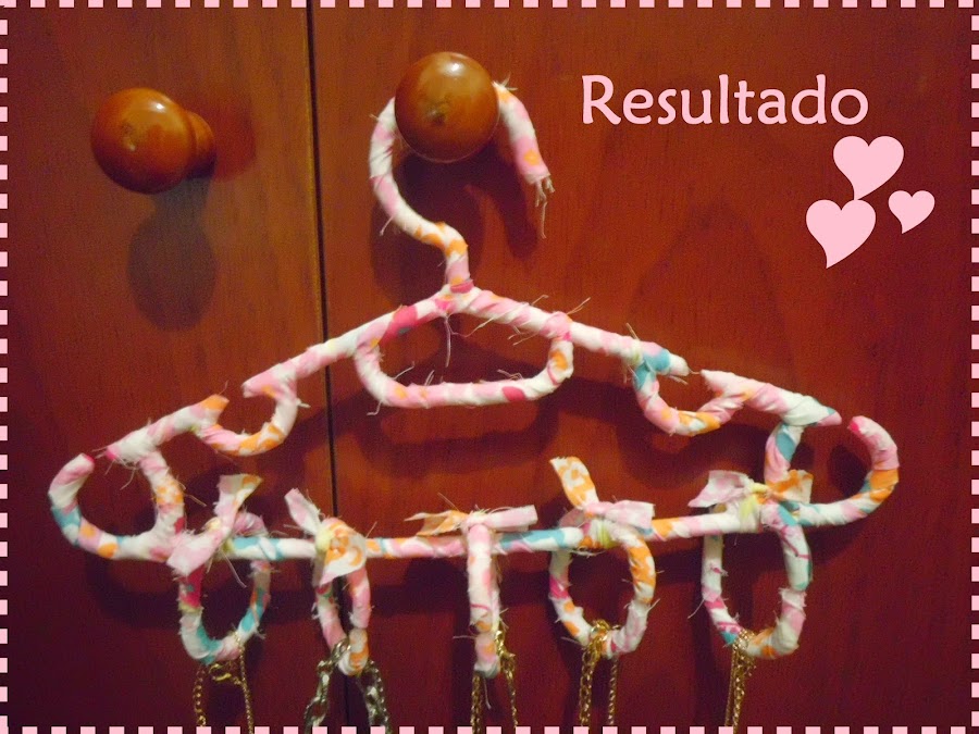 Les comento que yo utilicé una percha más pequeña (de las de clóset para niños, con lo cual el resultado fue un organizador un poquito más chiquito, pero igual de práctico...