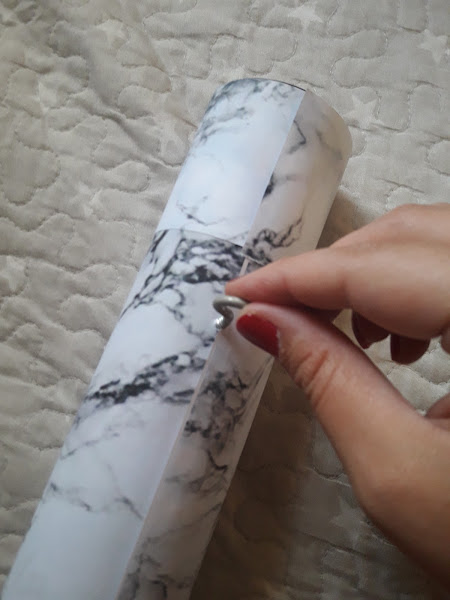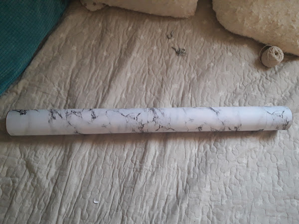 - Papel para forrar ( yo imprimí un estampado de mármol en la impresora)