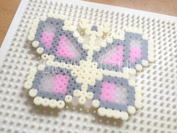 Y cómo no iba yo a tener una mariposa con Pyssla para hacerme un colgante...pues aquí os dejo el patrón que he diseñado:
