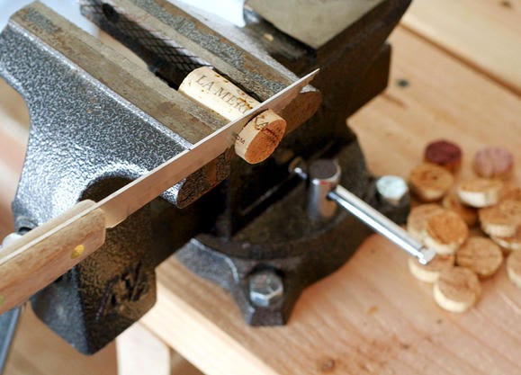 Lo primero será cortar el corcho en rodajas finas y lijar el borde para que nos quede suave.