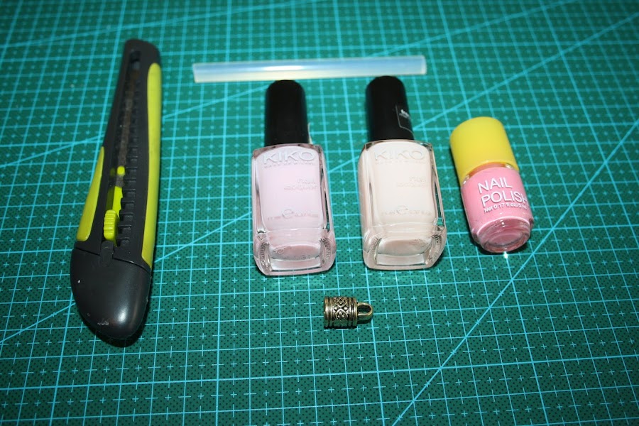 A continuación, pintamos la barra de silicona imitando el color del cuarzo. Para eso usé varios esmaltes de color rosa palo.