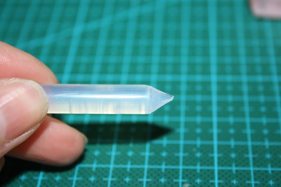Cogemos la barra de silicona y la cortamos a la altura que queramos que tenga el colgante. Después con el cúter cortamos la parte de delante en forma de lápiz afilado.