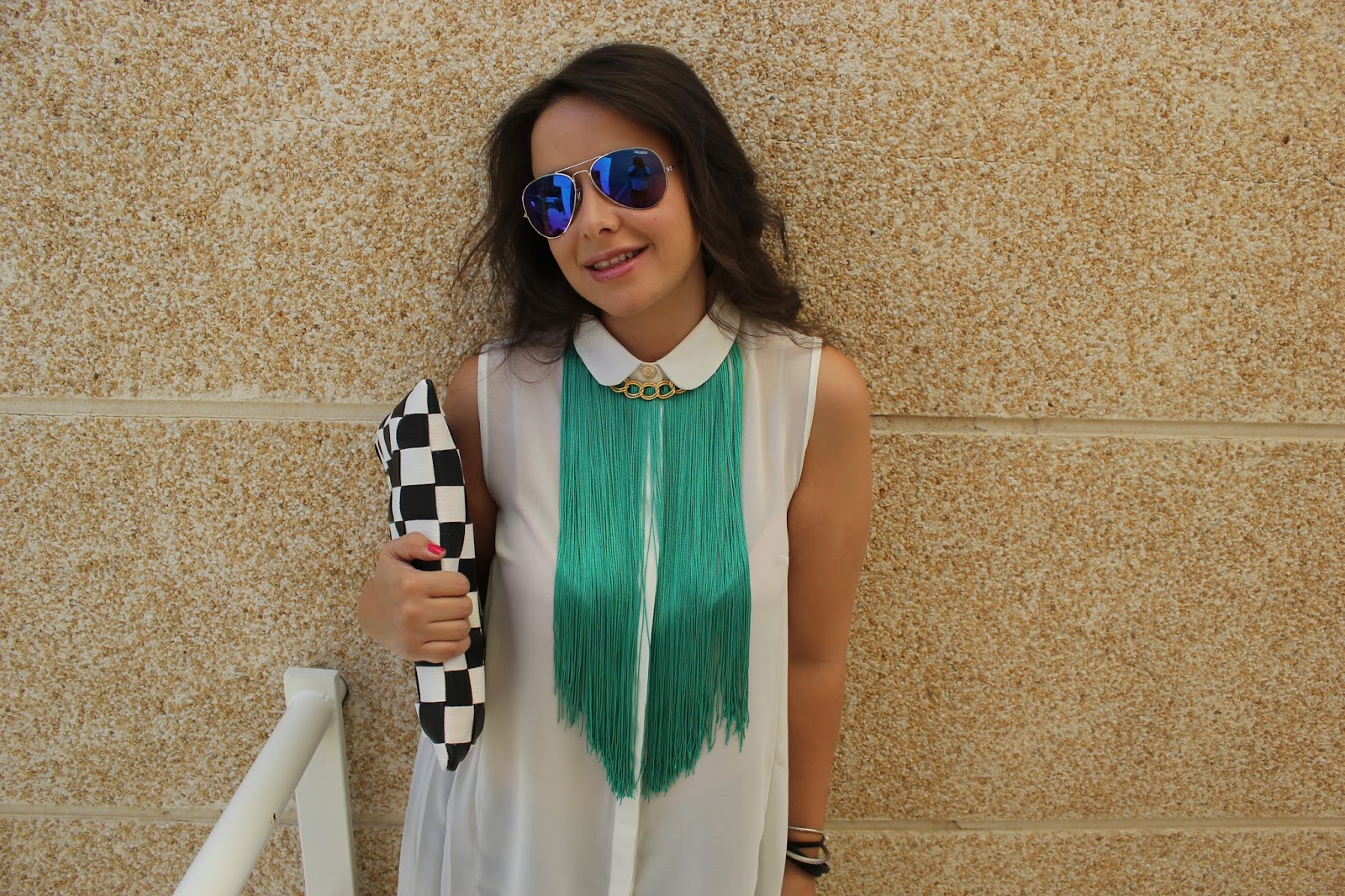 Los collares y camisas con flecos están a la última moda, nosotras nos adelantamos a esta tendencia y realizamos un precioso collar de flecos DIY, el año pasado. Como lo publiqué en verano, y entre que muchas estábamos de vacaciones y que el blog daba sus primeros pasos... Este DIY tan bonito quedó en el olvido. Pero este fin de semana lo he rescatado porque tenía una cena con unos amigos y dije: PUES LO VOY A VOLVER A SACAR DEL ARMARIO Y DEL BLOG!!!! Es que me encantaaaaa muchísimo :D