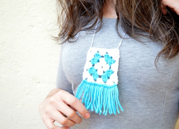 Hoy vengo a enseñarte el DIY de un collar de ganchillo que es lo máximo!! Se trata de hacer un simple granny square combinando los colores que mas te guste y añadirle unos flecos por debajo.