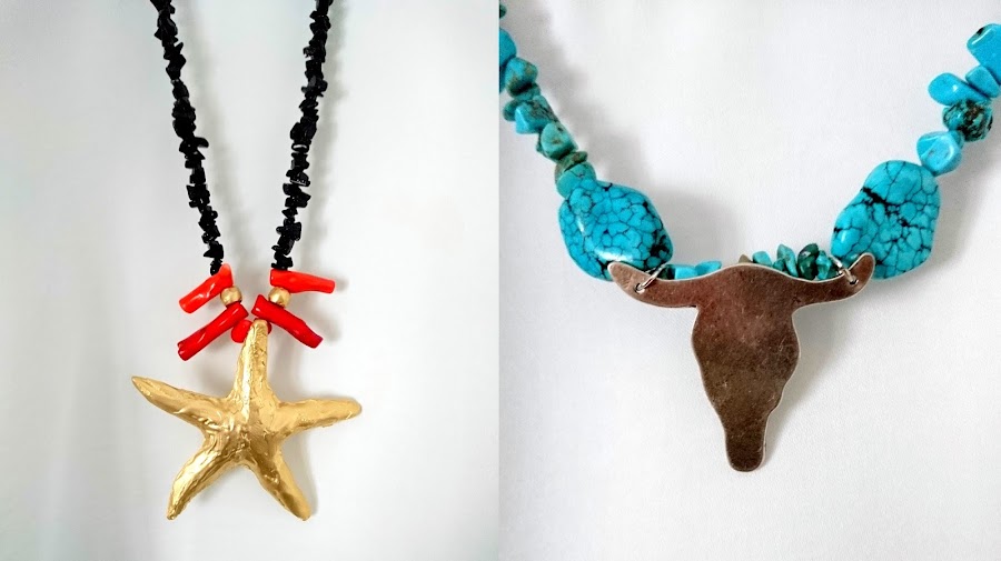 Son dos collares elaborados con piedras naturales de forma irregular. Os propongo dos ejemplos diferentes para que busquéis la inspiración en el estilo que más os guste.