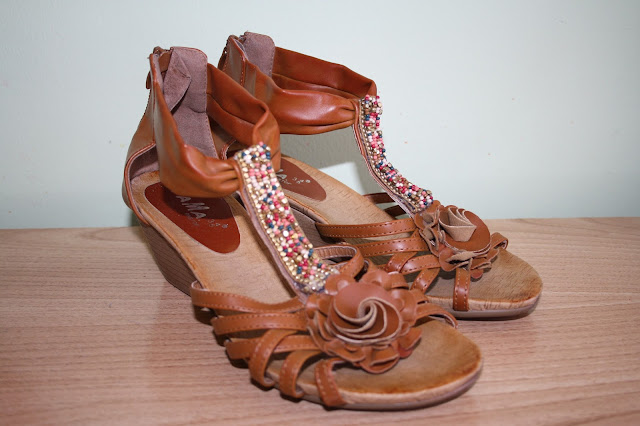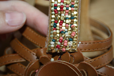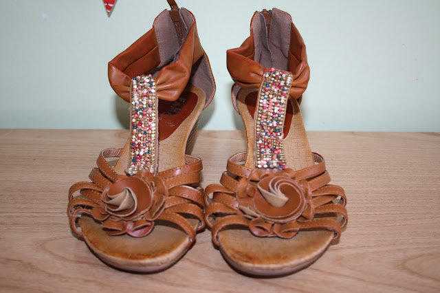 Tengo una amiga que me dejó unas sandalias para "taparles" una tira de flores que arrancó. La sandalia tenía flores por todo el empeine y como no le gustaban, me pidió hacer algo con ellas.