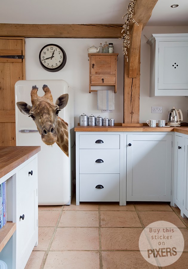 Para los amantes de la cocina están los vinilos para la nevera. Me ha encantado éste de la jirafa!