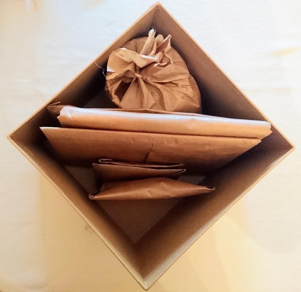 Poco a poco fui buscando todo esto en tiendas de decoración, de regalos y de detalles. Cuando ya reuní cada una de las partes, me dispuse a envolver cada cosa de forma independiente, para ello use papel de embalar pues como podréis ver en las fotografías, utilicé una gama de colores común en todos los detalles, usando los tonos negros, blancos y marrones y dando pequeñas pinceladas de color en algunos de los objetos.
