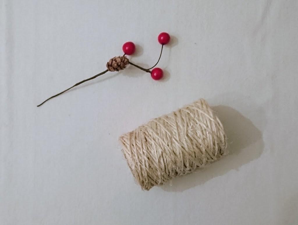 Para que la caja quedara cerrada hice una lazada con cuerda, detalle muy utilizado en este año y con una ramita de bolas rojas di el toque de color y navideño que tanto me gusta para estas fechas.