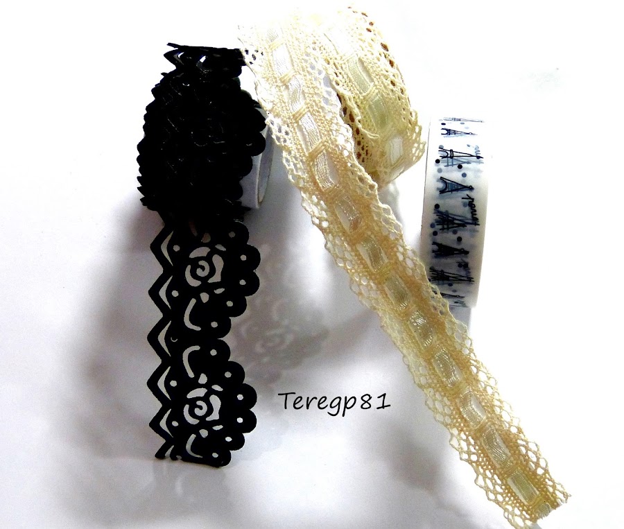 Desde bazares, tiendas de manualidades, librerías, grandes superficies... se pueden encontrar en infinidad de lugares, y además los hay de todo tipo, aquí os enseño mis tres preferidos: el primero es de terciopelo negro, el segundo con encaje y el último es tipo celo, con dibujos de la Torre Eiffel.