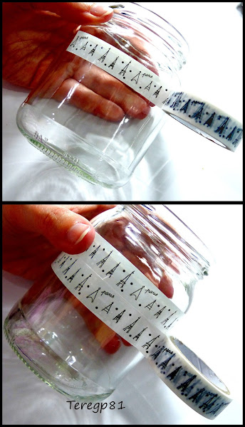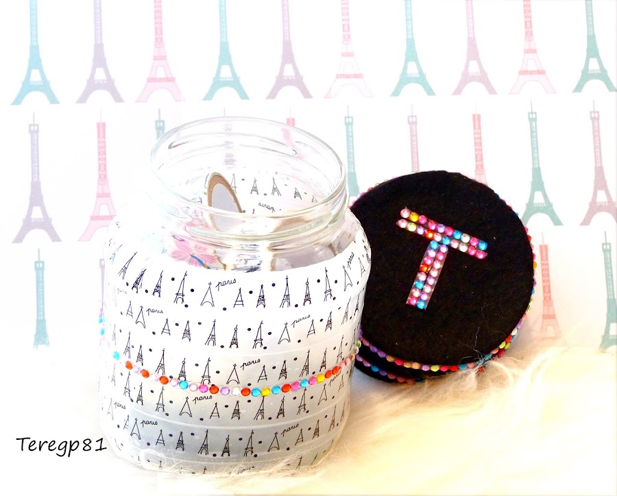 Este tarro lo he cubierto todo de Torres Eiffel. También le he puesto unos cristalitos de colores (como veis en la foto de portada).