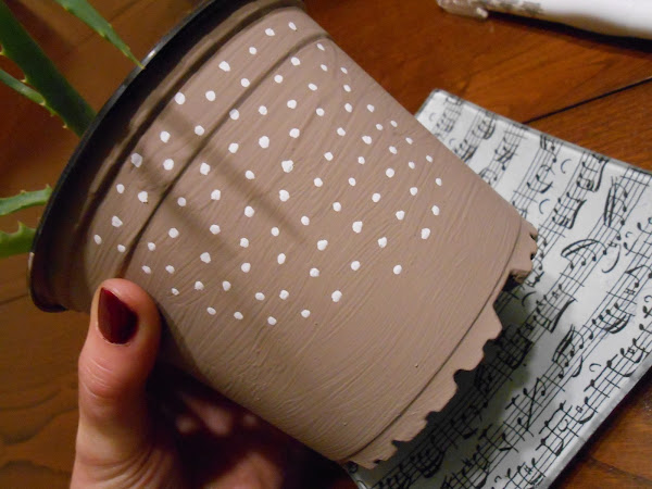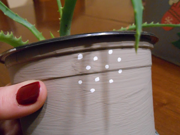 Una vez pintado, dejamos secar y posteriormente con el tippex, haremos pequeños lunares. Lo interesante es que contraste la pintura de abajo con los topos. No te preocupes si te falla el pulso, no pasa nada si los lunares no son perfectos. De hecho, si os fijáis, hay algunos que me quedaron más grandes que otros.