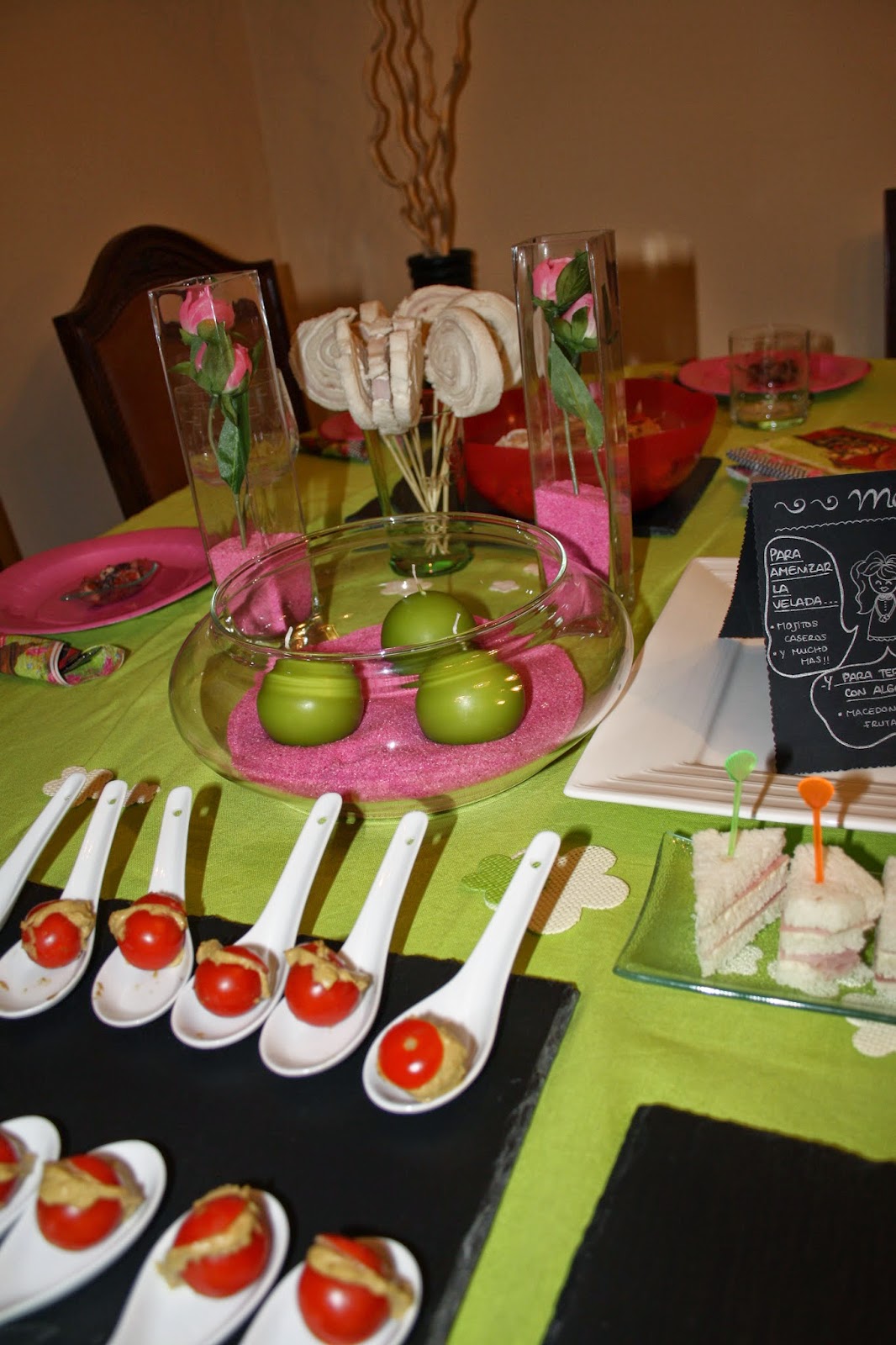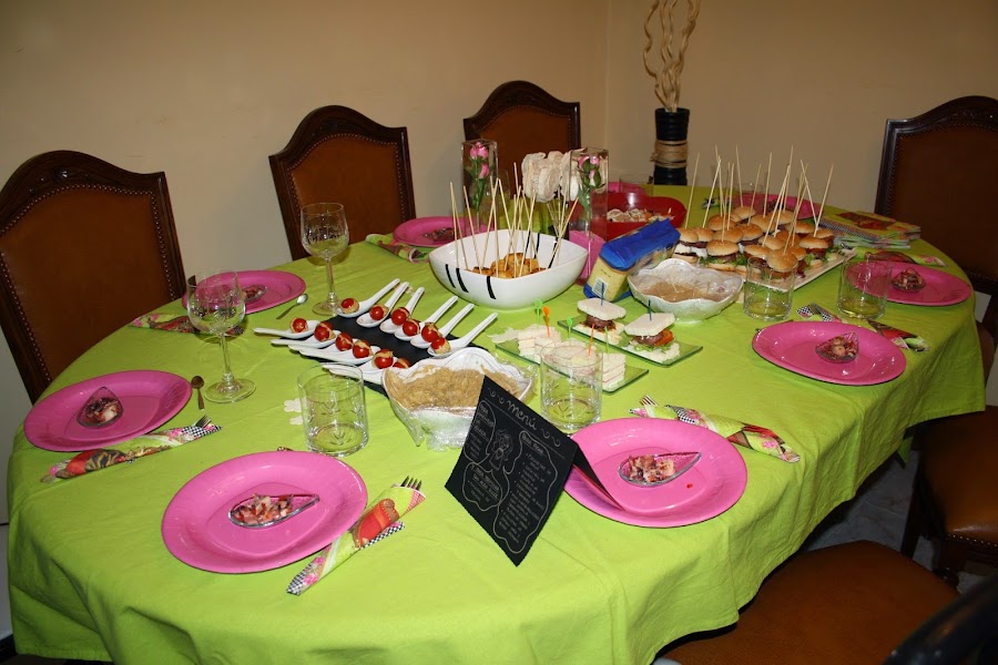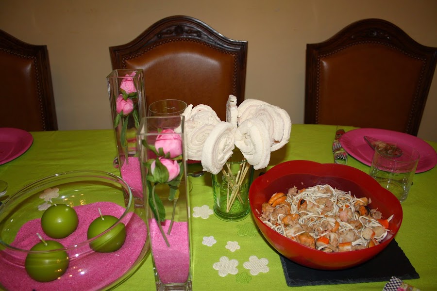 En mi casa de vez en cuando, organizo una jornada de puertas abiertas y nos juntamos tropecientos para comer como si no hubiese mañana. Me da por "glamourizar" la mesa del salón, pongo velas, compro flores.....y de paso nos damos una alegría al estómago ¿no? Que una cosa no quita la otra.