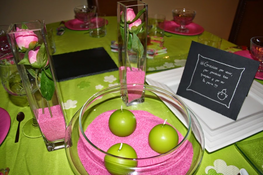 Escogí el verde, que es uno de mis colores favoritos y el rosa, que juntos me parecieron dos tonos alegres y frescos y le añadí mi pequeña colección de pizarra negra.