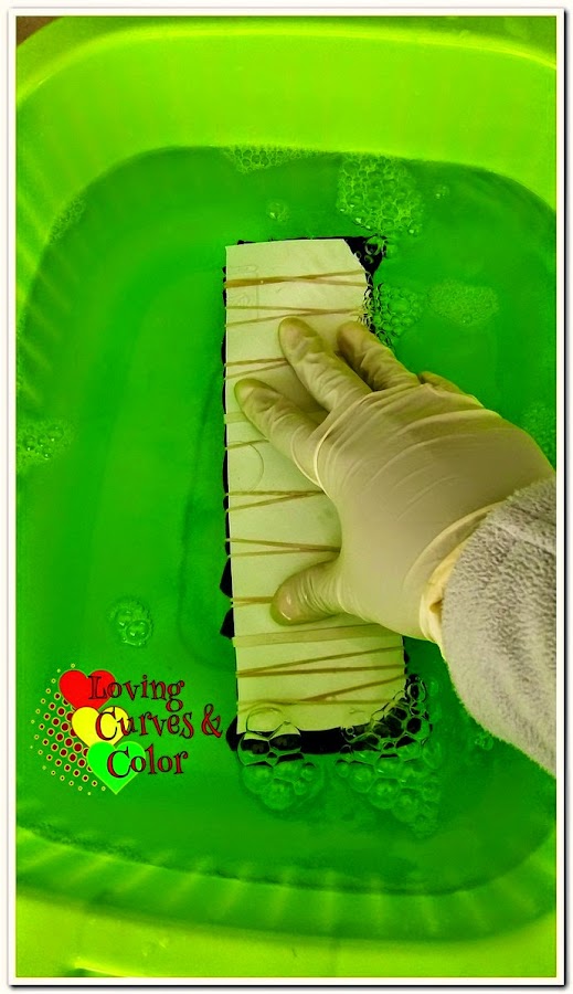 Es importante que antes de meter la pieza en la lejía pienses bien como y donde quieres que sean mas visibles las partes desteñidas, ya que eso dependerá de como la dobles y donde coloques las gomas elásticas y para que tengas una mejor idea te dejo este post de Stephanie Lynn donde lo enseña muy claramente.