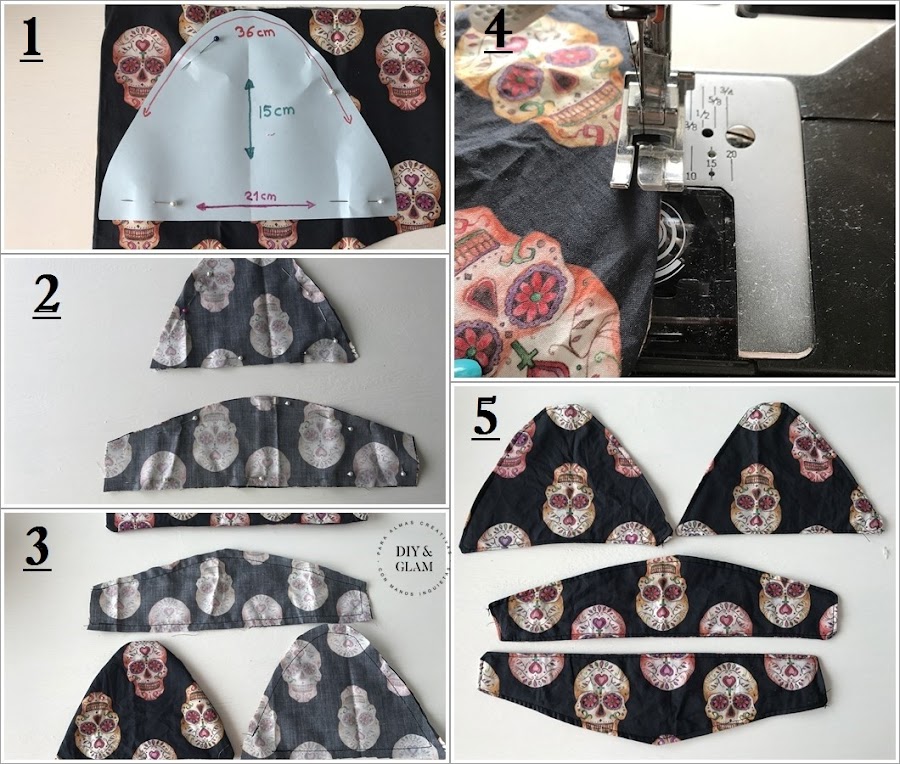 Cose los 4 patrones dejado unos 3 cm sin coser para luego poder darles la vuelta.