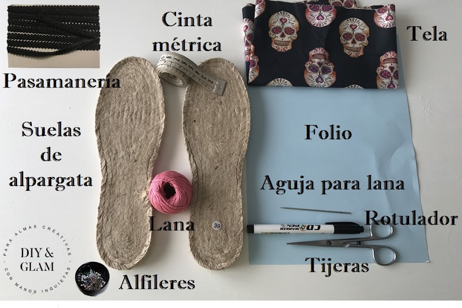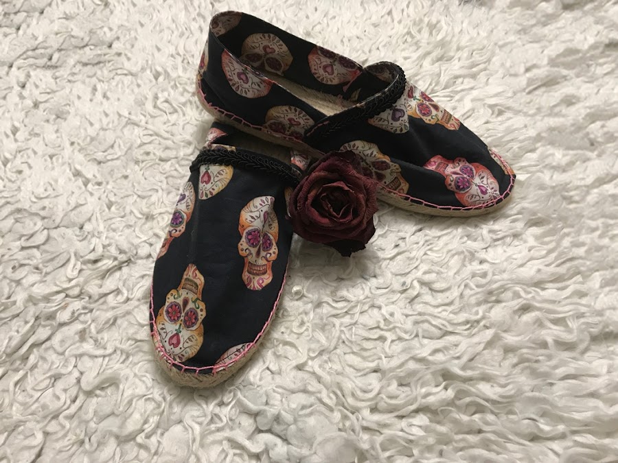 Lo dicho, cuando ví además el estampado de calaveras me recordó a esta tela que había comprado para hacer otra cosa. Cosa además que nunca hice. Me pareció perfecta para lanzarme al mundo alpargatil